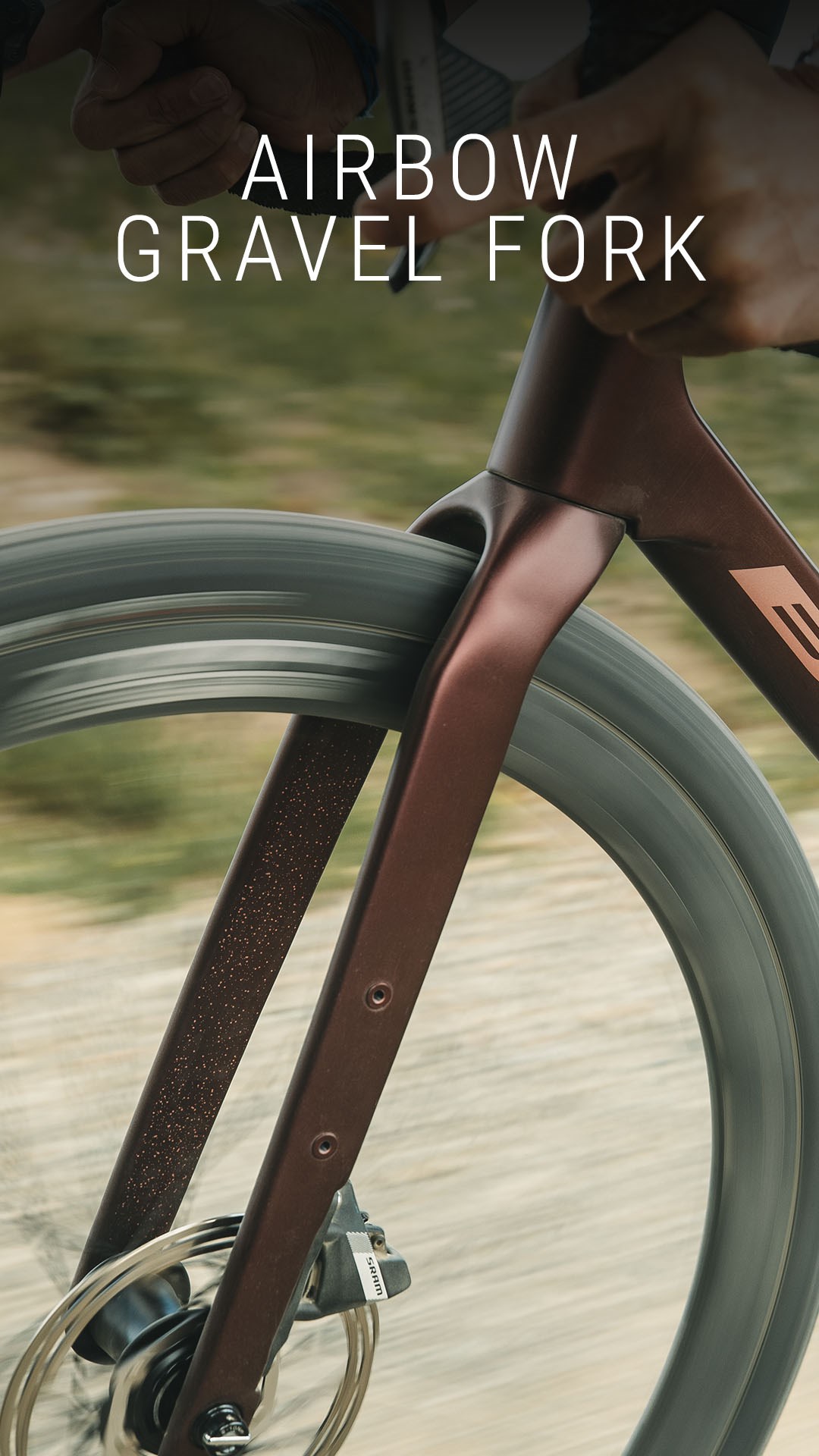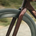 La fourche Airbow Evo Racing maximise le dégagement pour des pneus jusqu’à 45 mm, tout en absorbant les vibrations. Le câblage est totalement intégré via un système de direction ICR, ce qui rend l’ensemble très épuré.