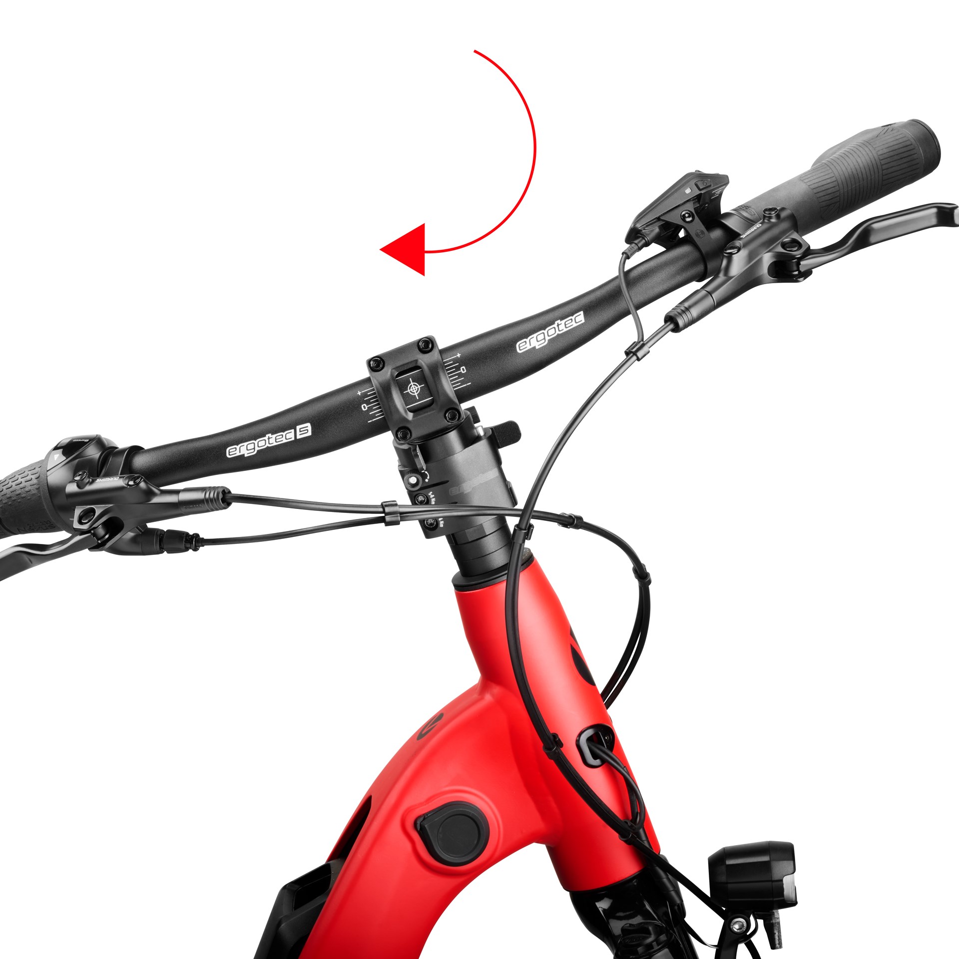 The ergotec Up & Down Turn stem allows you to adjust your handlebar height quickly and without tools – perfect for switching between a sporty and upright riding position or for space-saving transport. Its innovative 90° turn function operates independently from the height adjustment, offering maximum flexibility. Installation is simple and does not require cutting or modifying the steerer tube. Reversion to the original setup is possible at any time. Compatible with 1 ⅛" A-head forks made of aluminum or steel, the stem provides a height adjustment range from 73 mm to 223 mm. Made from high-grade AL 7075 T6/AL 6061 T6 and weighing approx. 485 g, the Up & Down Turn stem ensures maximum stability – verified by Safety Level 5. Patent pending.